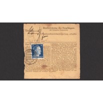 Karta nadania paczki ze znaczkami z wizerunkiem Adolfa Hitlera.