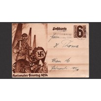 Kartka zaadresowana jest z Norymbergi do Wiednia. Jest ona zapisana na rewersie. Dodatkowo na lewo od znaczka widnieje stempel z informacją o referendum w kraju związkowym Saara, które miało miejsce w styczniu 1935 roku.