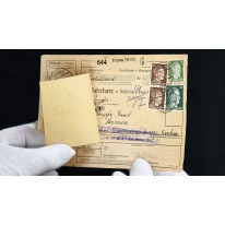 Karta nadania paczki ze znaczkami z wizerunkiem Adolfa Hitlera.