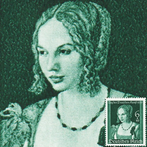 Na znaczku przedstawiono reprodukcję obrazu zatytułowanego „Portret młodej weneckiej kobiety", namalowanego ręką niemieckiego mistrza Albrechta Dürera (1471-1528).