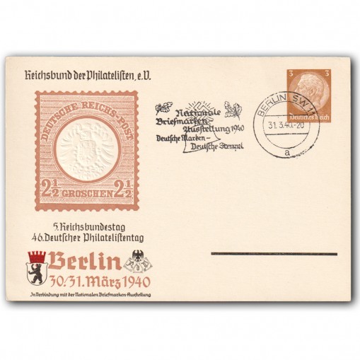 Kartka wydana została przez związek filatelistów niemieckich. Po jej lewej stronie widnieje stary znaczek z herbem wytłoczonym w papierze.