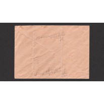 Koperta jest zaklejona, znajdują się na niej różne notatki, a pole adresowe jest pokryte woskiem lub inną substancją.