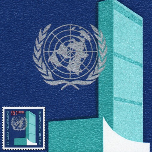 Znaczek upamiętniający 25-lecie Organizacji Narodów Zjednoczonych.
