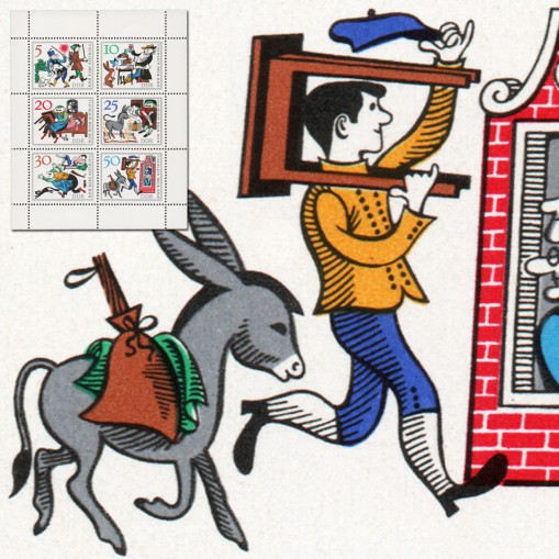 Seria w arkuszu, na znaczkach której przedstawiono ilustracje baśni braci Grimm pod tytułem „Stoliczku, nakryj się” (niem. „Tischchen deck dich, Goldesel und Knüppel aus dem Sack”).