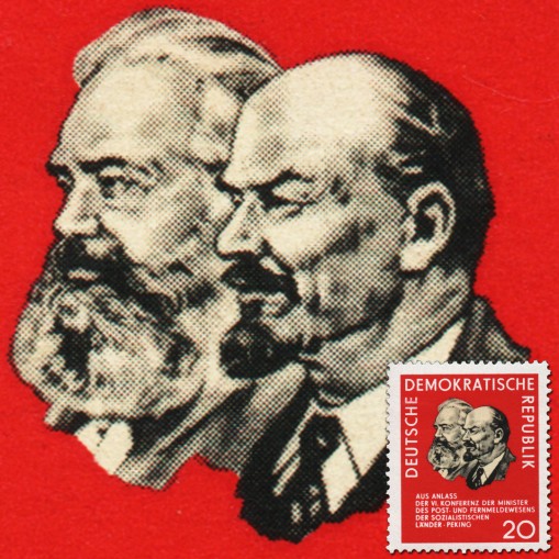 Na znaczku widnieją Karol Marks i Włodzimierz Lenin.