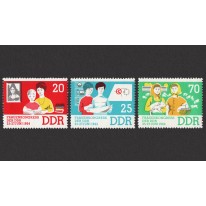 Na znaczkach widnieje kobieta z dzieckiem, kobiety w miejscu pracy i kobiety pracujące na wsi.