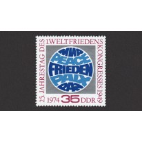 Znaczek wydany z okazji 25. rocznicy pierwszego Kongres Obrońców Pokoju, który miał miejsce w Paryżu.