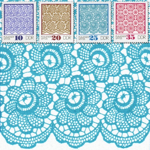Seria, na znaczkach której widnieją wzory koronki z Plauen - miasta, które swój rozkwit w XV wieku zawdzięcza tkaczom i sukiennikom. Pod koniec XIX wieku na rynek weszły haftowane tutaj maszynowo koronki, które zdobyły uznanie na całym świecie. Szybko przybywało zakładów produkcyjnych, a w ciągu zaledwie kilku lat liczba mieszkańców Plauen podwoiła się do ponad stu tysięcy.