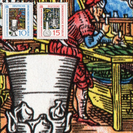 Na znaczkach widnieją: średniowieczny szklany puchar oraz współczesne szkło z fabryki w Jenie.
