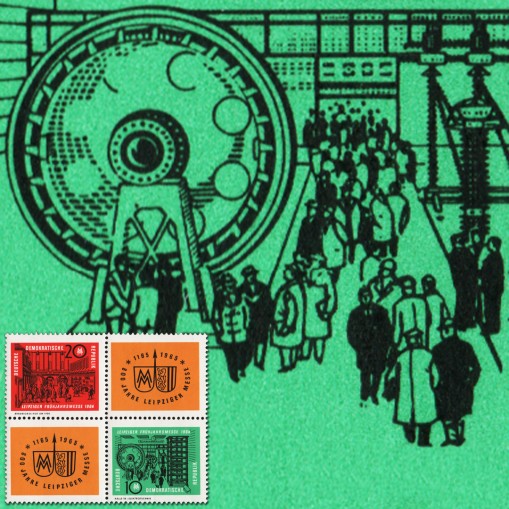 Seria w czwórce z przywieszkami upamiętniająca wiosenne targi w Lipsku.