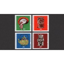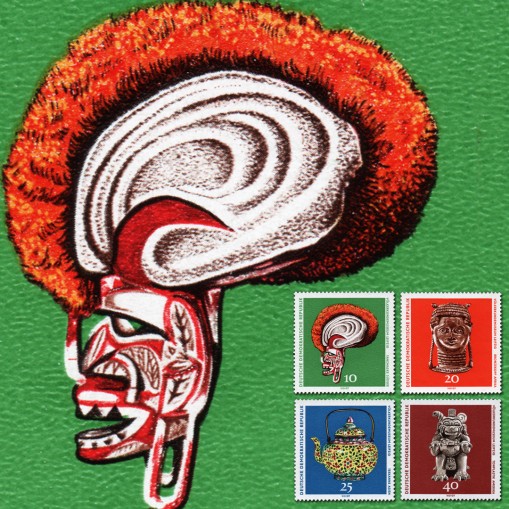 Seria, na znaczkach której widnieją następujące eksponaty muzeum etnograficznego w Lipsku: