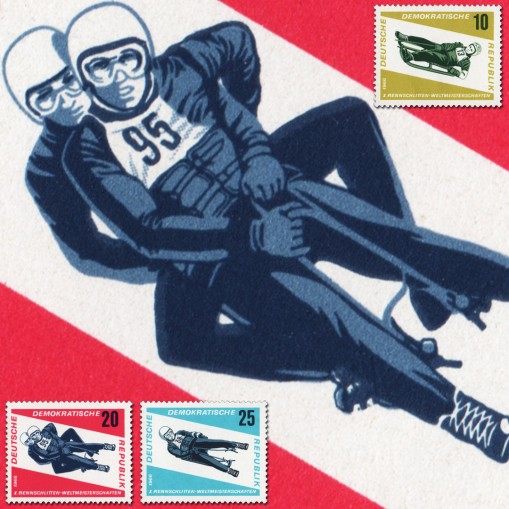Na znaczkach widnieją trzy konkurencje tego sportu: jedynki kobiet, dwójki mężczyzn i jedynki mężczyzn.
