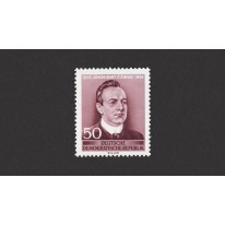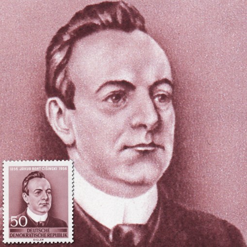 Znaczek upamiętniający setną rocznicę urodzin Jakuba Barta-Ćišinskiego, serbołużyckiego poety, pisarza i dramatopisarza, tworzącego w języku górnołużyckim, teoretyka literatury i kultury serbołużyckiej, duchownego katolickiego.