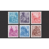 Seria obiegowa promująca plan pięcioletni. Są to nowe odmiany kolorystyczne walorów wydanych pierwotnie w 1953 roku.