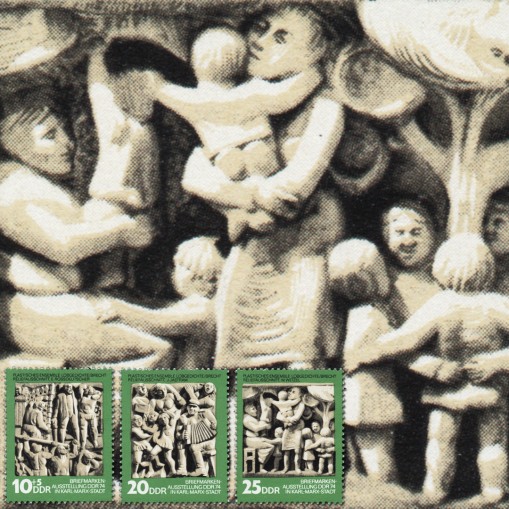 Na znaczkach widnieją fragmenty znajdującej się w Chemnitz płaskorzeźby „Lobgedichte” (pol. wiersze pochwalne) wykonanej na podstawie wierszy Bertolda Brechta: „Pochwała rewolucjonisty” (artysta Eberhard Roßdeutscher), „Pochwała dialektyki” (Joachim Jastram) i „Pochwała partii” (Martin Wetzel).