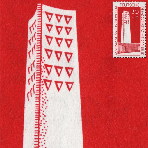Znaczek, z którego sprzedaży część dochodów przeznaczona była na budowę pomnika niemieckiego nazistowskiego obozu koncentracyjnego Sachsenhausen.