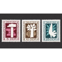Na znaczkach widnieją kolejno: młot i kowadło (prawo do pracy), drzewo i kula ziemska (prawo do życia) oraz gołąbek i słońce (prawo do wolności).