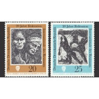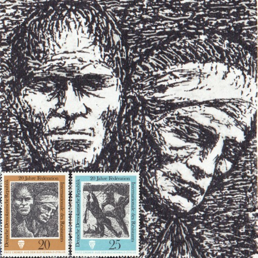 Na znaczkach widnieją reprodukcje litografii Fritza Cremera z cyklu Buchenwald o tytułach: „Missbraucht und geschunden, wozu?” (Wykorzystywany i maltretowany, po co?) oraz „Jedem das Seine” (Każdemu się należy).