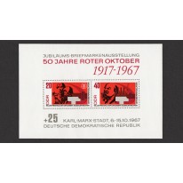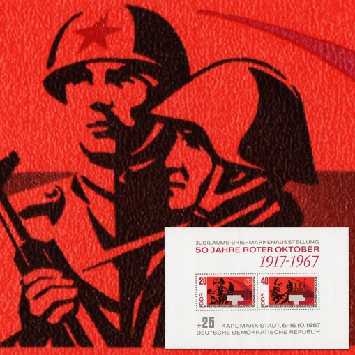 Blok upamiętniający wystawę filatelistyczną celebrującą 50. rocznicę rewolucji październikowej w Rosji. Wystawa miała miejsce w Chemnitz.