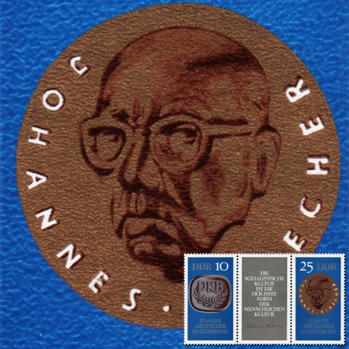 Na znaczkach widnieje logo tej organizacji oraz medal Johannes Bechera.