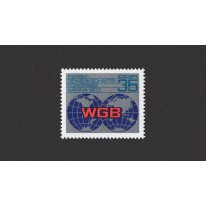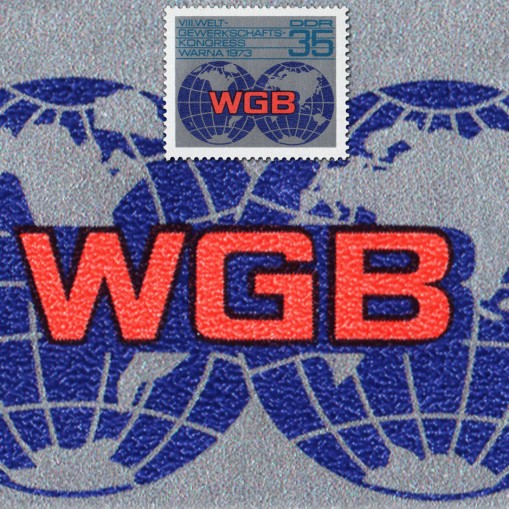 Na znaczku widnieje logo Światowej Federacji Związków Zawodowych.
