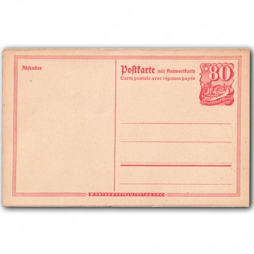 Kartka pocztowa z załączoną kartką przeznaczoną na odpowiedź zwrotną.