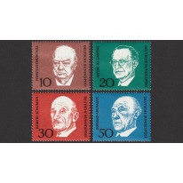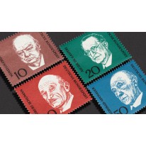 Znaczki upamiętniające Konrada Adenauera, niemieckiego polityka, męża stanu, przywódcy Unii Chrześcijańsko-Demokratycznej (CDU), kanclerza RFN w latach 1949–1963.