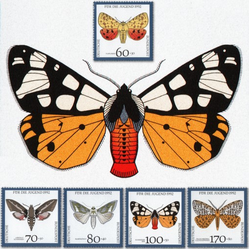 Na znaczkach widnieją następujące gatunki ciem zagrożone wyginięciem: