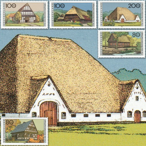 Na znaczkach widnieją tradycyjne domy wiejskie z różnych części Niemiec, kolejno: Spreewaldu, Turyngii, Schwarzwaldu, Westfalii i Szlezwiku-Holsztynu.