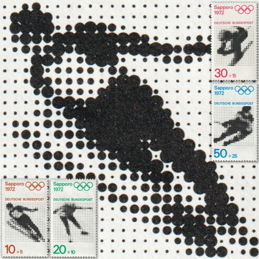 Znaczki wydane z okazji olimpiady zimowej w Sapporo w roku 1972.