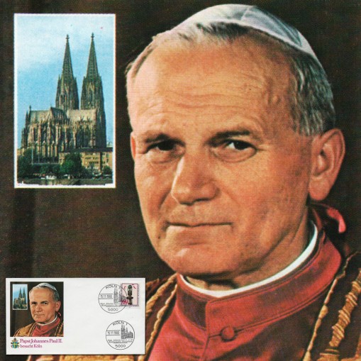 Pojedyncza koperta okolicznościowa celebrująca wizytę papieża Jana Pawła II w Kolonii podczas jego pierwszej podróży do Niemiec w dniach 15. - 19. listopada 1980 roku.
