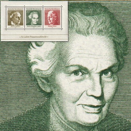 Znaczki upamiętniające 50-lecie uzyskania praw wyborczych przez kobiety w Niemczech.