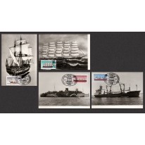 Kartki wykonane są na zdjęciach odbitych na papierze barytowym (stąd charakterystyczne zawijanie się papieru). Na kartach przedstawiono zdjęcia statków widocznych na znaczkach, bądź też ich modeli lub obrazów.
