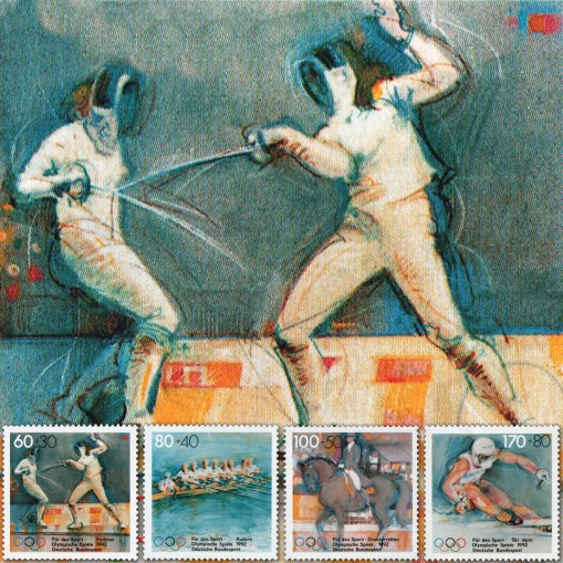 Znaczki promujące igrzyska olimpijskie w Barcelonie i zimowe igrzyska olimpijskie w Albertville.