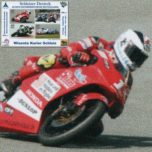 Samoprzylepne znaczki w bloku prywatnej firmy kurierskiej Wisenta Kurier Schleiz z niemieckiego miasta Schleiz.