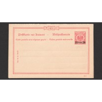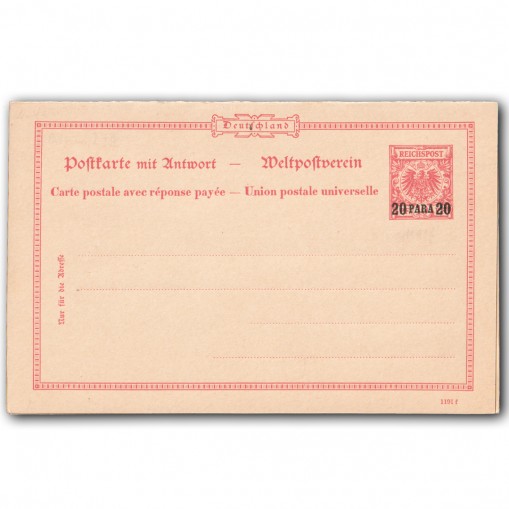 Kartka pocztowa z załączoną kartką na odpowiedź zwrotną, przeznaczona do użytku przez niemieckie urzędy pocztowe na obszarze Turcji.
