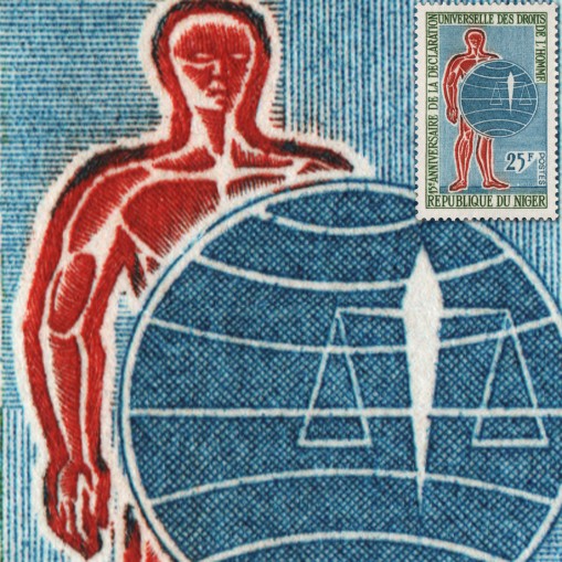 Znaczek wydany z okazji 15. rocznicy Powszechnej Deklaracji Praw Człowieka, czyli zbioru praw człowieka i zasad ich stosowania uchwalonego przez Zgromadzenie Ogólne ONZ 10 grudnia 1948 roku w Paryżu.