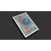 Na znaczku widnieje postać ludzka i kula ziemska.