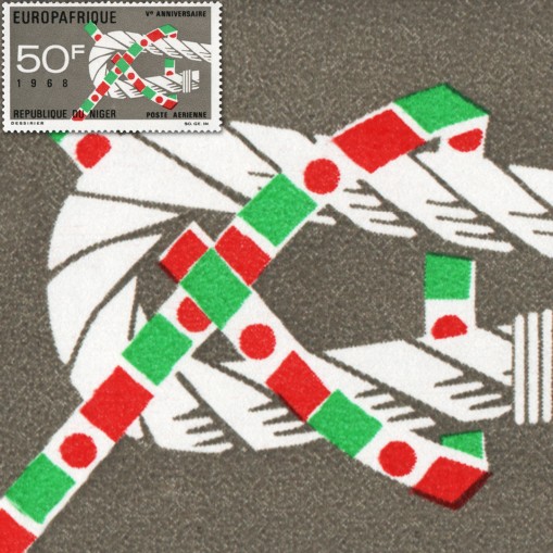 Na znaczku widnieje kula ziemska i logo Europafrique.