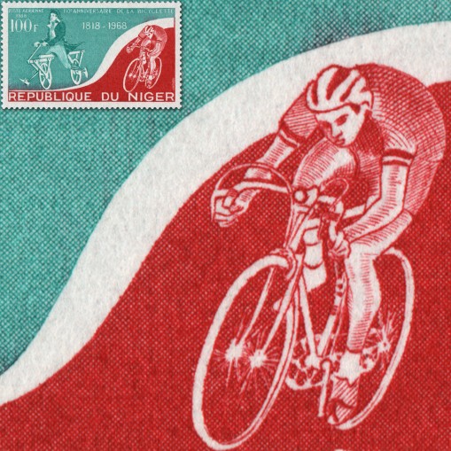 Znaczek wydany z okazji 150. rocznicy wynalezienia roweru.