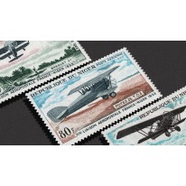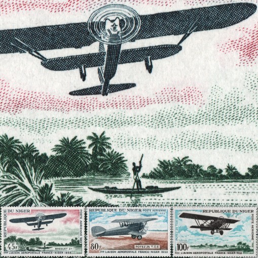 Znaczki upamiętniające 35. rocznicę pierwszego lotniczego transportu pocztowego pomiędzy Francją a Nigrem.