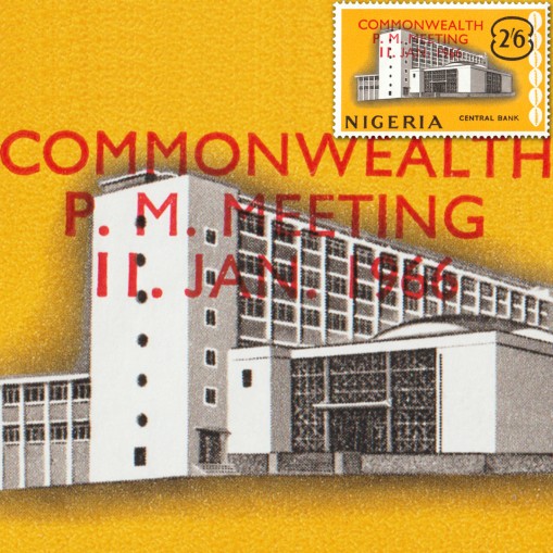 Znaczek wydany uprzednio w 1961 roku przedstawiający budynek banku centralnego, tym razem z nadrukiem upamiętniającym konferencję polityków z krajów Wspólnoty Narodów.