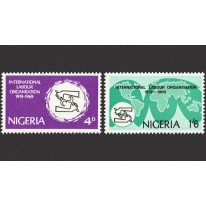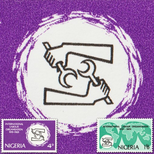 Znaczki upamiętniające 50. rocznicę powstania Międzynarodowej Organizacji Pracy.