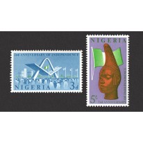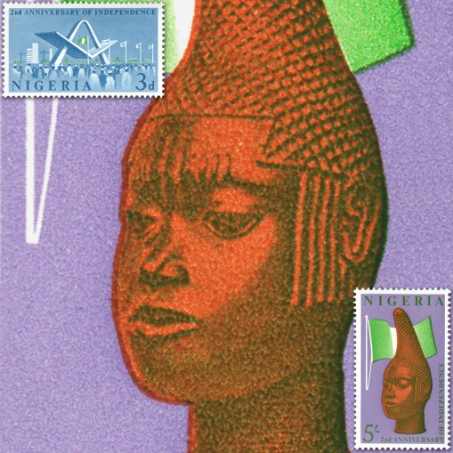 Znaczki upamiętniające pierwszą rocznicę ogłoszenia niepodległości Nigerii.