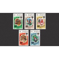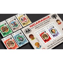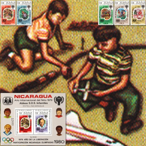 Ta rzadka emisja, jak parę innych nikaraguańskich niespodzianek filatelistycznych z porewolucyjnego roku 1980, oferuje niespotykany melanż tematyczny.