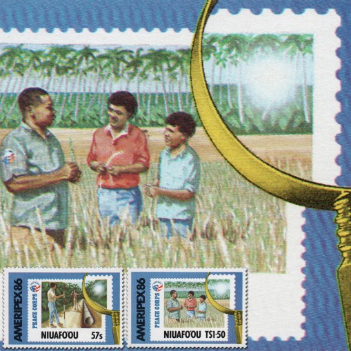 Na znaczkach widnieje geodeta pracujący przy kładzeniu rurociągu i rolnicy doglądający plonów. Są to osoby pracujące na Tonga z ramienia Korpusu Pokoju, czyli amerykańskiej agencji pomagającej słabiej rozwiniętym krajom w zaspokajaniu potrzeb technicznych przy współpracy wykwalifikowanych kadr amerykańskich wolontariuszy.
