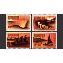 Samoprzylepne znaczki upamiętniające 25. rocznicę przesiedleń spowodowanych wybuchem wulkanu na wyspie Niuafo’ou.