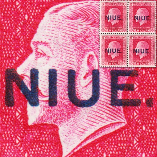 Znaczki nowozelandzkie z portretem króla Jerzego V i nadrukiem „NIUE.”.