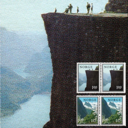 Na znaczkach widnieją: klif Preikestolen znajdujący się ponad fjordem Lyse oraz szczyt Gulleplet widziany z miejscowości Balestrand.
