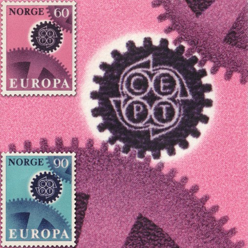 Emisja EUROPA CEPT. Znaczki tej emisji mają rozpoznawalny wśród filatelistów dizajn kół zębatych będący projektem belgijskiego grafika (Oscar Bonnevalle). Środkowe koło, w które wpisane jest logo CEPT, ma 22 zębów odpowiadających 22 krajom zrzeszonym wówczas w CEPT.